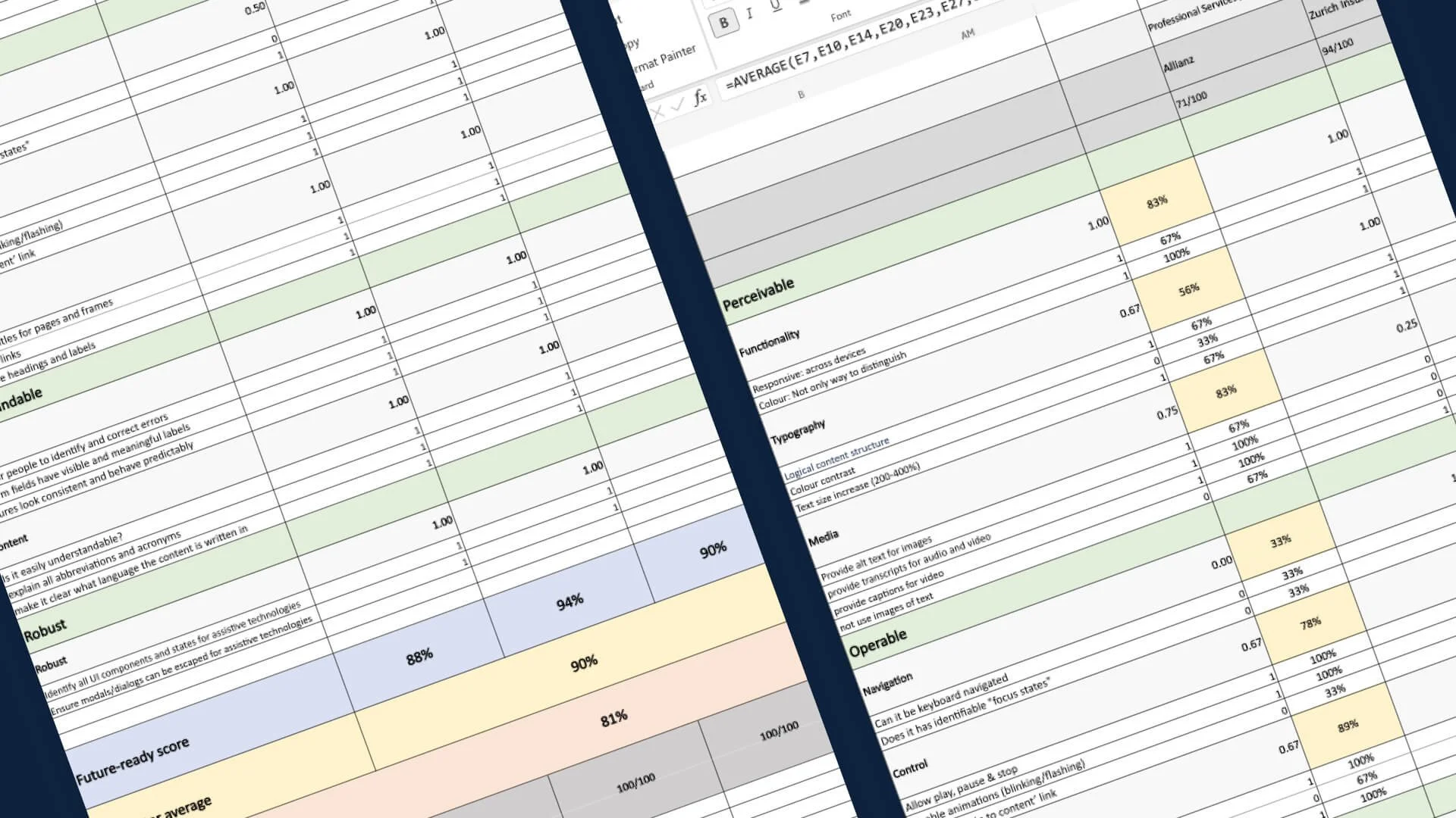 Using SiteImprove & Equally.ai to generate a metric driven score, coupled with human assessment to uncover granular insights across accessibility features such as a screenreader and keyboard navigating. My criteria was developed and aligned with the minimum AA WCAG 2.1 documentation for Perceivable, Operable, Understandable and Robust (POUR).